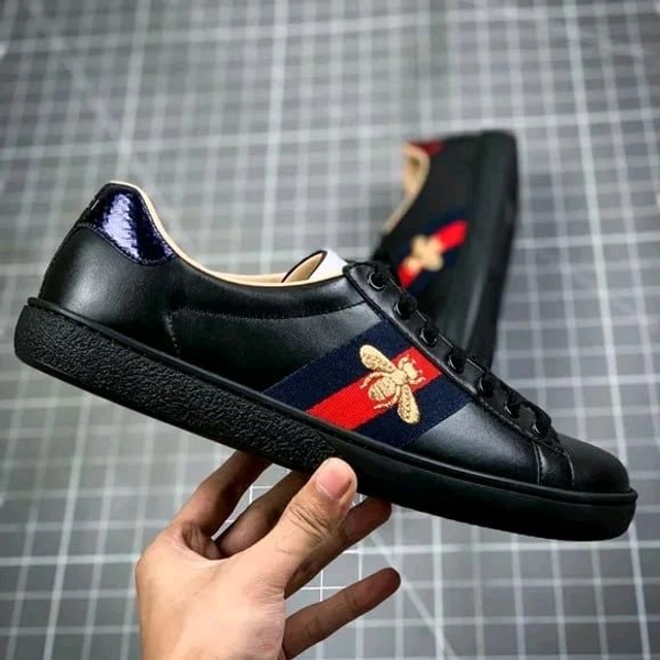Gucci black leather ace embroidered bee low(Master...